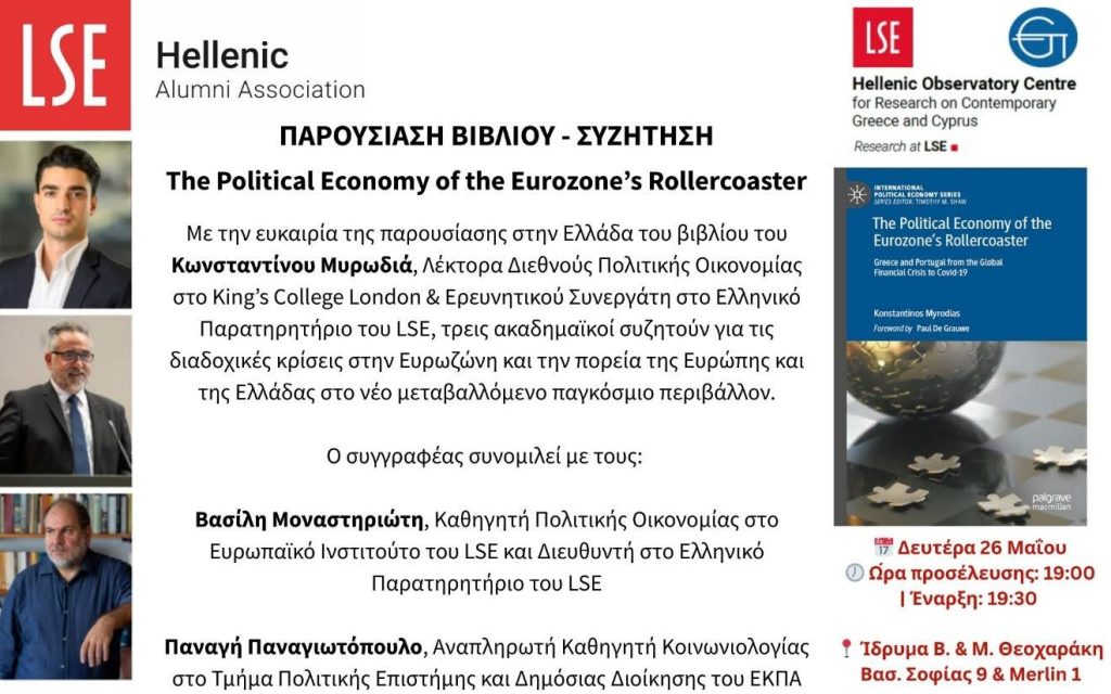 Ο Ελληνικός Σύλλογος Αποφοίτων του LSE, σε συνεργασία με το Ελληνικό Παρατηρητήριο του LSE, συνδιοργανώνουν, στο πλαίσιο του Global Networking Night του LSE, την παρουσίαση του βιβλίου του συναπόφοιτου Κωνσταντίνου Μυρωδιά: