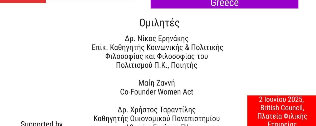 Σας περιμένουμε όλους με μεγάλη χαρά να συζητήσουμε για αυτό το τόσο επίκαιρο θέμα και να ακούσουμε με ιδιαίτερο ενδιαφέρον τους εξαιρετικούς ομιλητές μας τη Δευτέρα 2 Ιουνίου 2025 στο British Council, Πλατεία Φιλικής Εταιρείας (Κολωνακίου) 17, Αθήνα.
